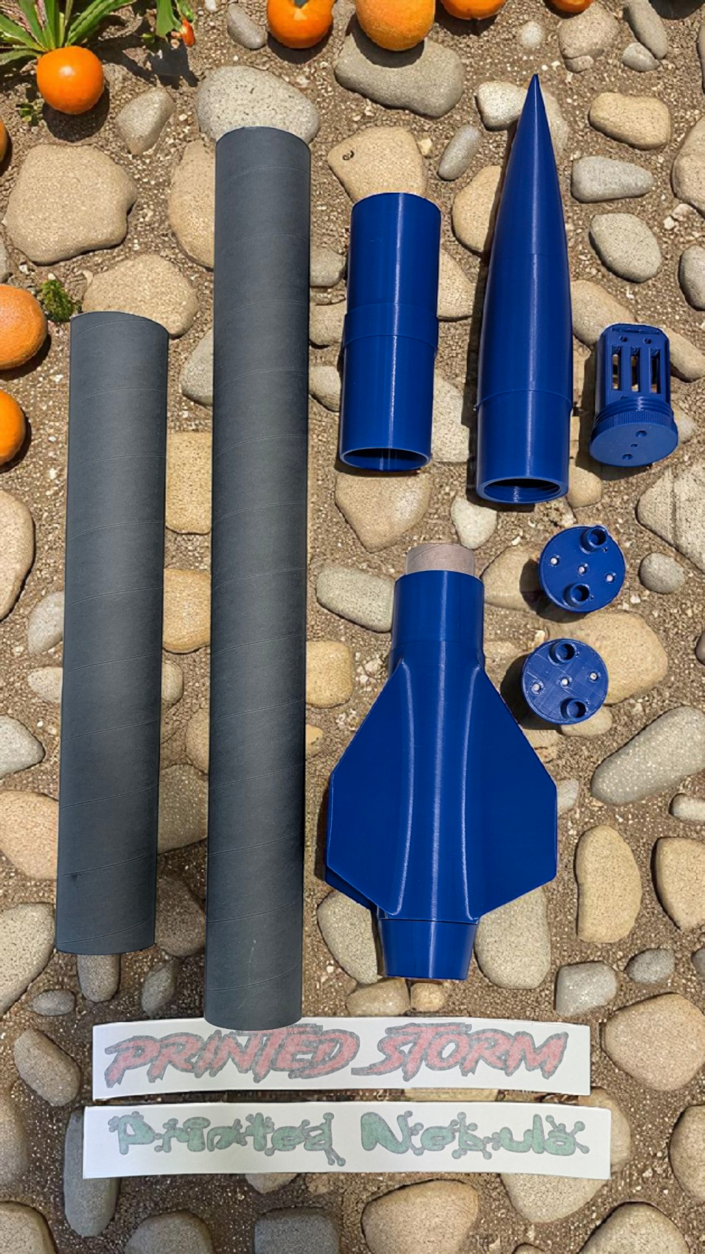 RoysRockets proudly presents a 3D printed, Mach-capable, rocket kit ready for enthusiasts. Developed over time, this kit features durable PETG material suitable for high-power rocketry and includes Blue Tube body tubes for enhanced performance.